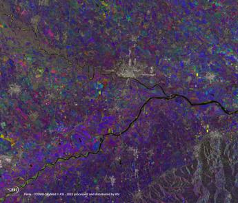 (Adnkronos) – L'Asi, Agenzia Spaziale Italiana, ha diffuso un'immagine del Po dallo spazio che racconta come nei mesi invernali i satelliti Cosmo-SkyMed abbiano osservato il fiume in allarme siccità. Negli ultimi anni il fenomeno della siccità nel nostro paese è sempre più evidente. In particolare, la carenza d’acqua viene riscontrata con maggiore intensità nelle regioni del Nord Italia, comportando la diminuzione della portata dei fiumi e l’abbassamento del livello dei laghi. Le difficoltà di approvvigionamento dell’acqua si ripercuotono sulle differenti culture agricole del nostro paese. Nell’immagine il dettaglio nell’area di Pavia (al centro della foto) con il Ponte della Becca (a est di Pavia) che attraversa la confluenza tra i fiumi Ticino e Po. In verde sono evidenziati i cambiamenti avvenuti negli ultimi 3 anni al corso di entrambi i fiumi e le aree che attualmente risultano in secca. L’immagine è il risultato di un’elaborazione in RGB di 3 immagini acquisite dalla Costellazione Cosmo-SkyMed dal 2020 a marzo 2023, ad ognuno dei 3 canali RGB è stata associata una delle immagini selezionate per l’analisi. —tecnologiawebinfo@adnkronos.com (Web Info)