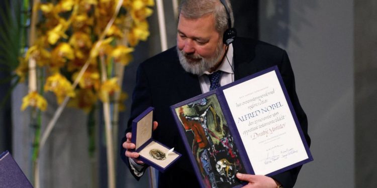 Il direttore di Novaya Gazeta è stato premiato lo scorso anno insieme alla giornalista filippina Maria Ressa. Muratov ha già donato la sua quota dell’assegno che accompagna il Premio per progetto sociali.